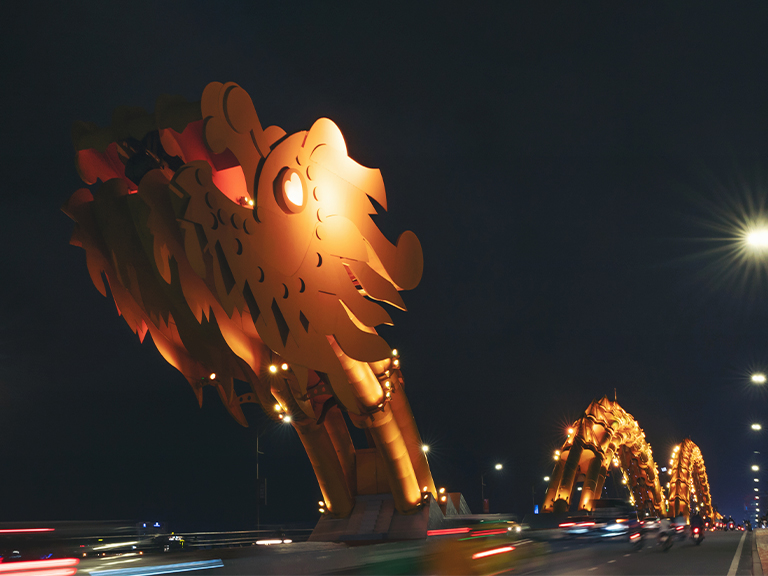 Dragon Bridge is Da Nang’s signature modern landmark: a dragon-shaped steel bridge spanning the Hàn River. It’s 666 m long and opened in 2013, designed to be both a transportation artery and a city symbol (the dragon is a powerful cultural symbol in Vietnam).